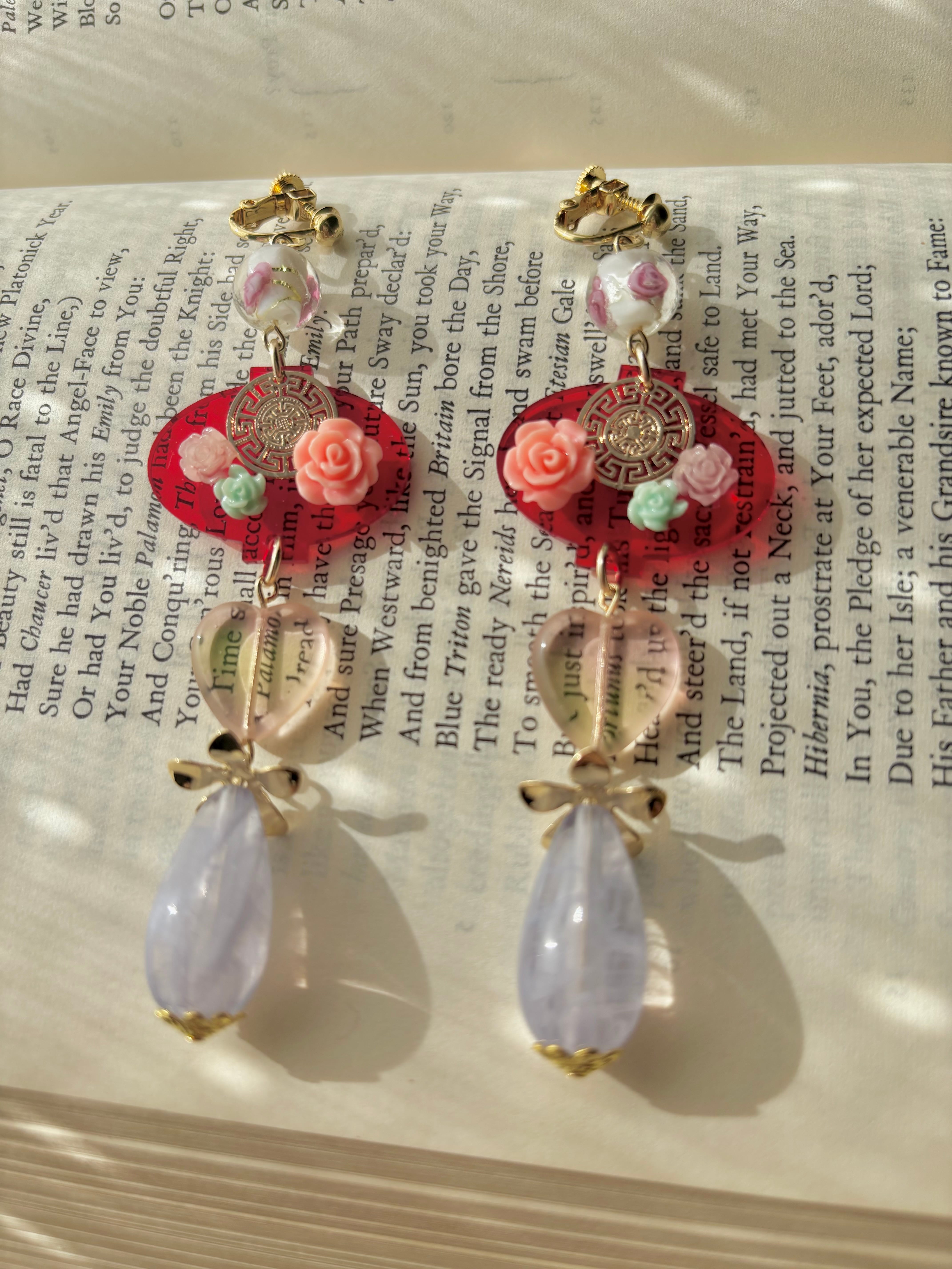 ネジばね式イヤリング、フックピアス、樹脂フックピアスからお選びいただき、備考にてお申し付けください。