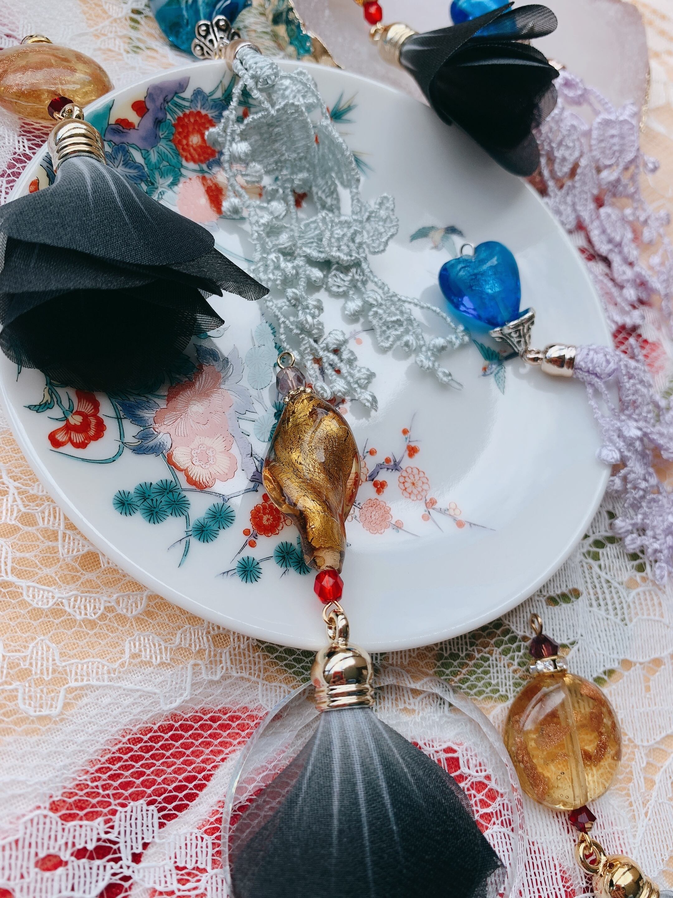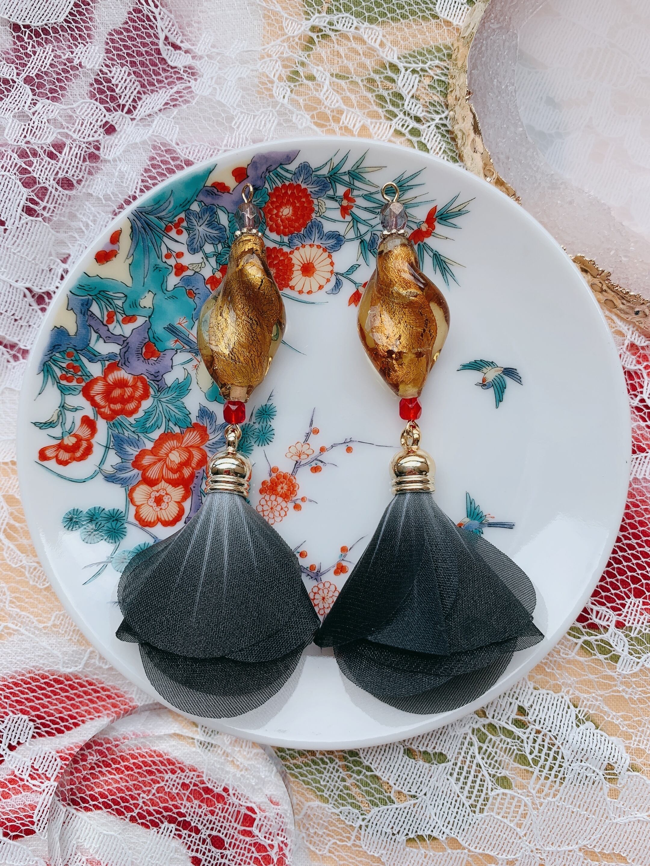 黒いナイロンの花びらタッセルがゆらゆらします。