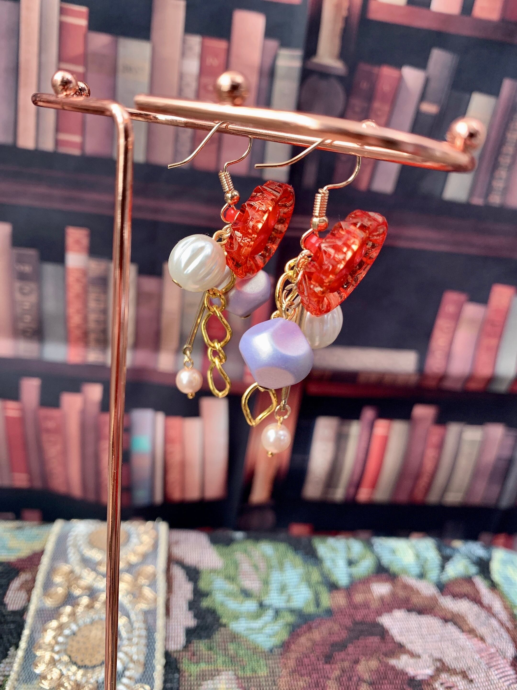 赤いインポートボタンのみみかざりです。