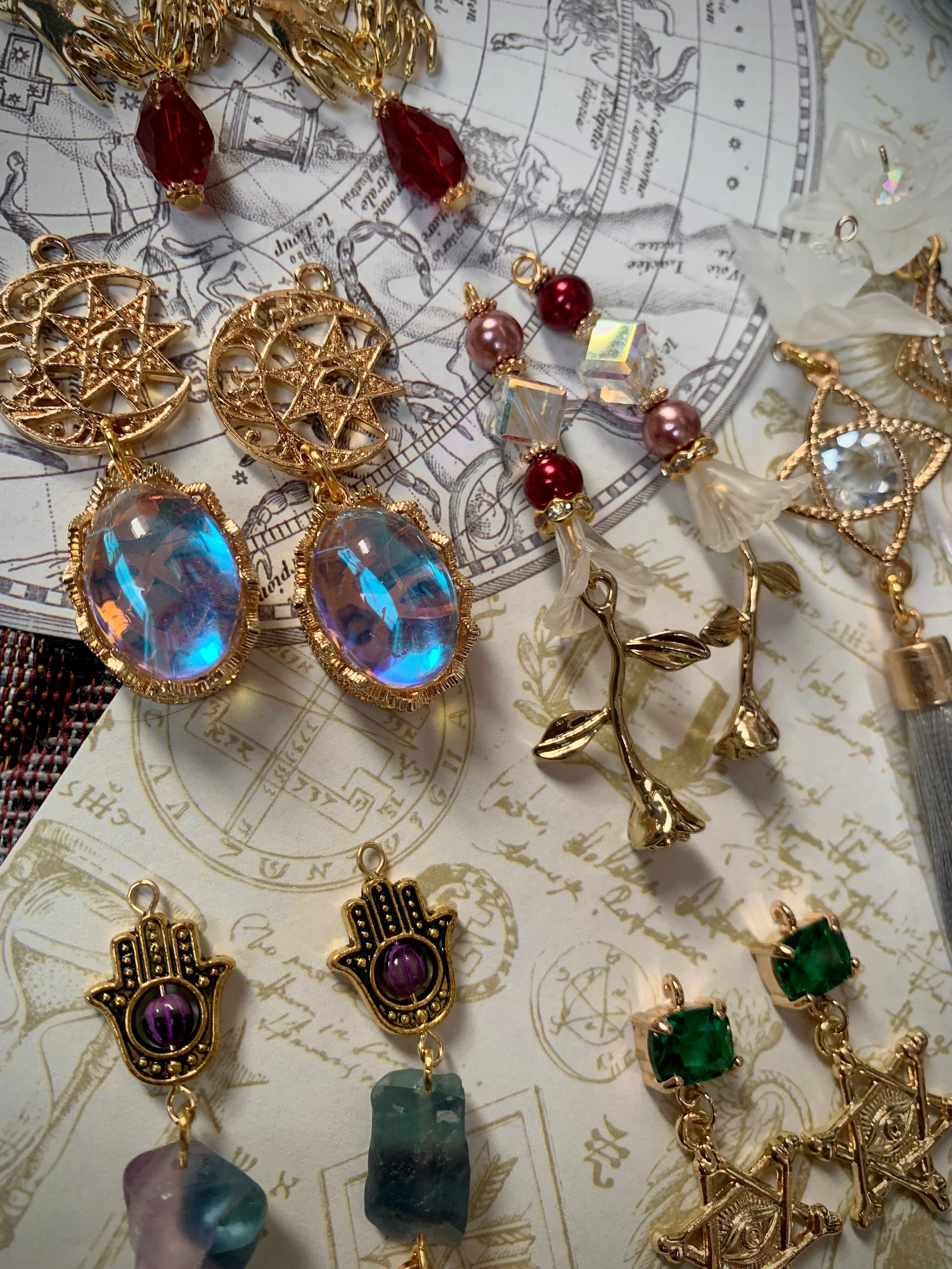 ネジばね式イヤリング、ポストピアス、フックピアス、樹脂フックピアスからお選びいただき、備考にてお申し付けください。